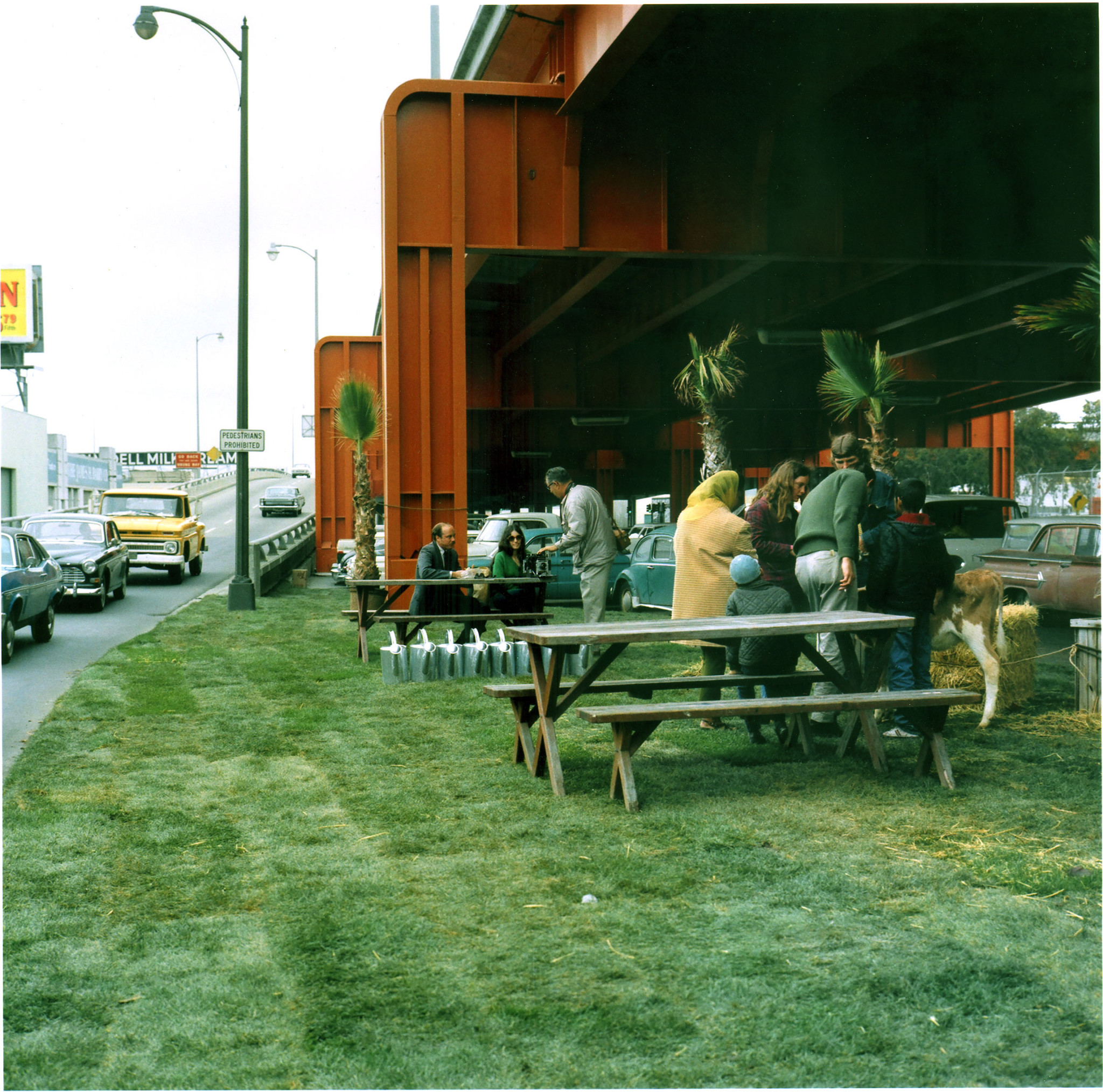 7. San Francisco Museum of Art, “SECA/VESA Award 1970,” news release, 1970. Carton 10, Folder 56, “Vernal Equinox Special Award, 1970–1972,” Society for the Encouragement of Contemporary Art (SECA) Records, 1960–2010; SFMOMA Archives. Sherk’s Portable Parks were staged at the following locations: Portable Parks I: June 25 on the James Lick Freeway near the Oak Street on-ramp; Portable Parks II on June 26 at the corner of Mission, Otis, and Duboce at the freeway off-ramp; Portable Parks III on June 27–28 at Maiden Lane from Grant Street to Stockton Street. Sherk would expand these one-day parks on a much larger scale with the alternative space Crossroads Community (The Farm) (1974–80) located on land parcels underneath a freeway interchange (and even later with A Living Library.)