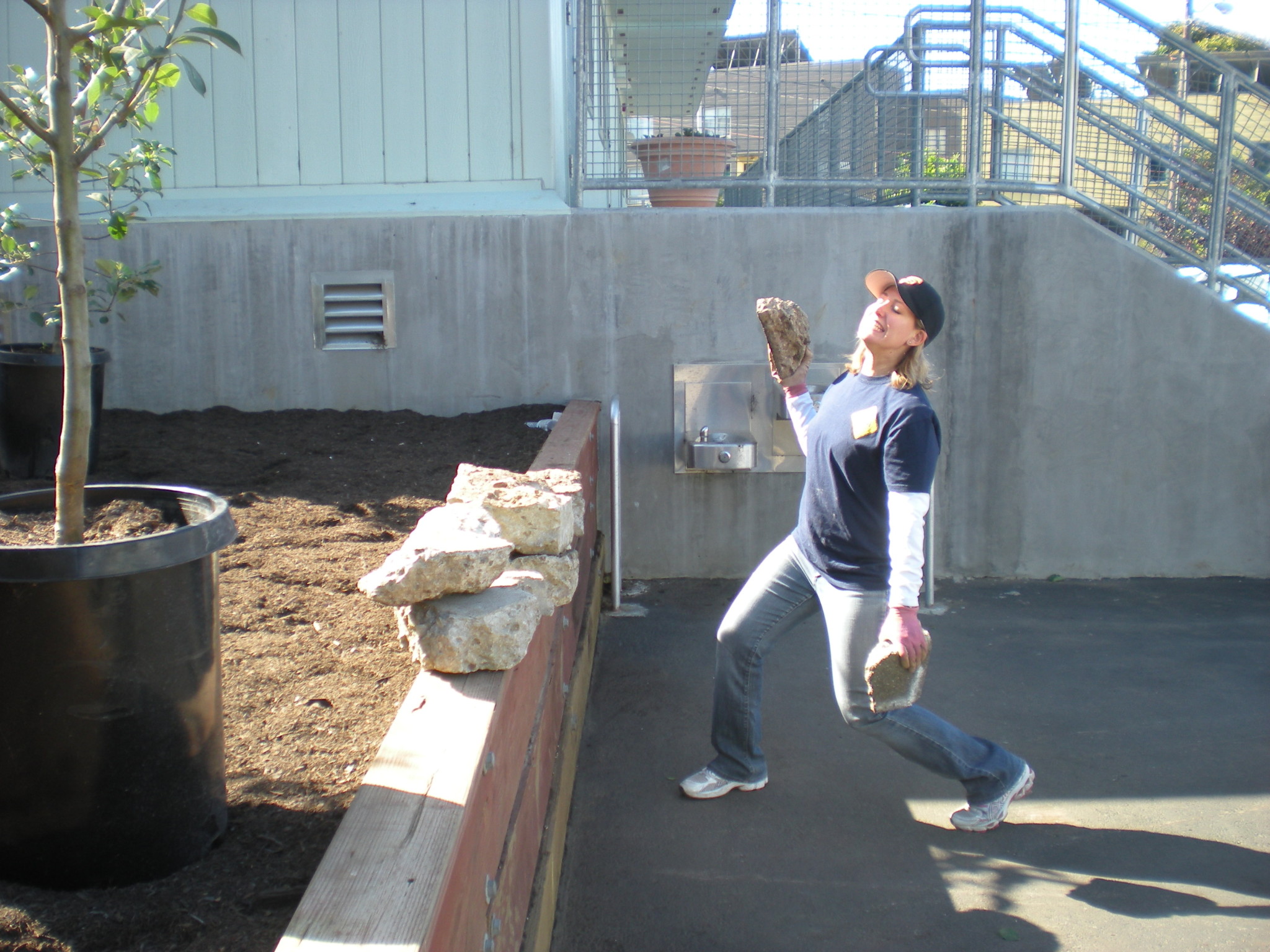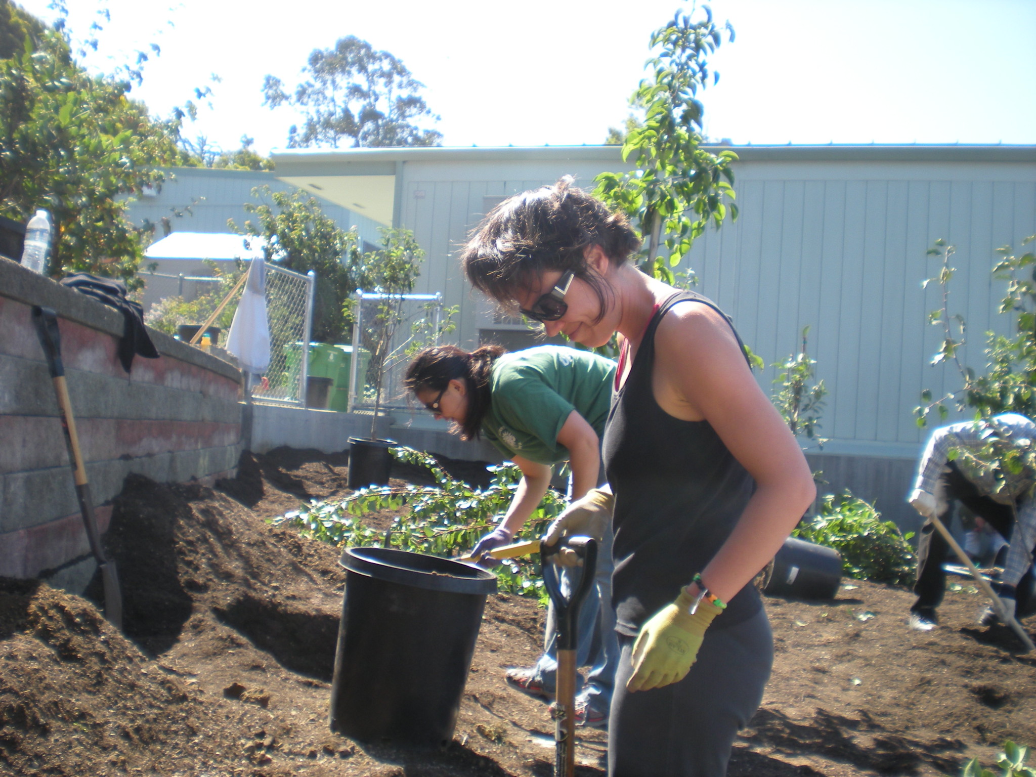 Our Bernal Heights Living Library & Think Park at shared campus of Junipero Serra Child Development Center and Junipero Serra Elementary School has two new Learning Zones - an Organic Orchard and California Native Learning Zone, planted on Saturday, August 13, by a team of volunteers from San Francisco Rotary Club and Junipero Serra Elementary School PTA, led by Bonnie Ora Sherk, Founder and Director of Life Frames, Inc., and A.L.L. Instructor, Gregory Vose. Many thanks to all volunteers, especially Rotary leader for this event, David Dye, and also to Ron Walton and Recology for donating 30 cubic yards of great organic compost !